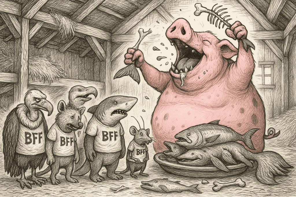 The pig went through them like a knife through butter. It started squealing again, “More, more, more.”