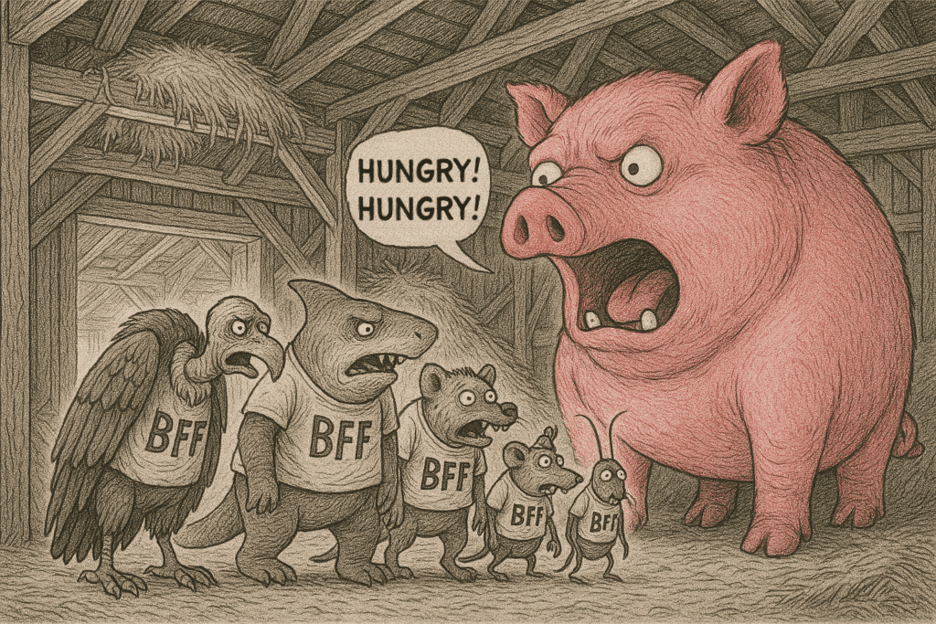 The next day the pig was as big as a house and whining, “Hungry, hungry, hungry!”