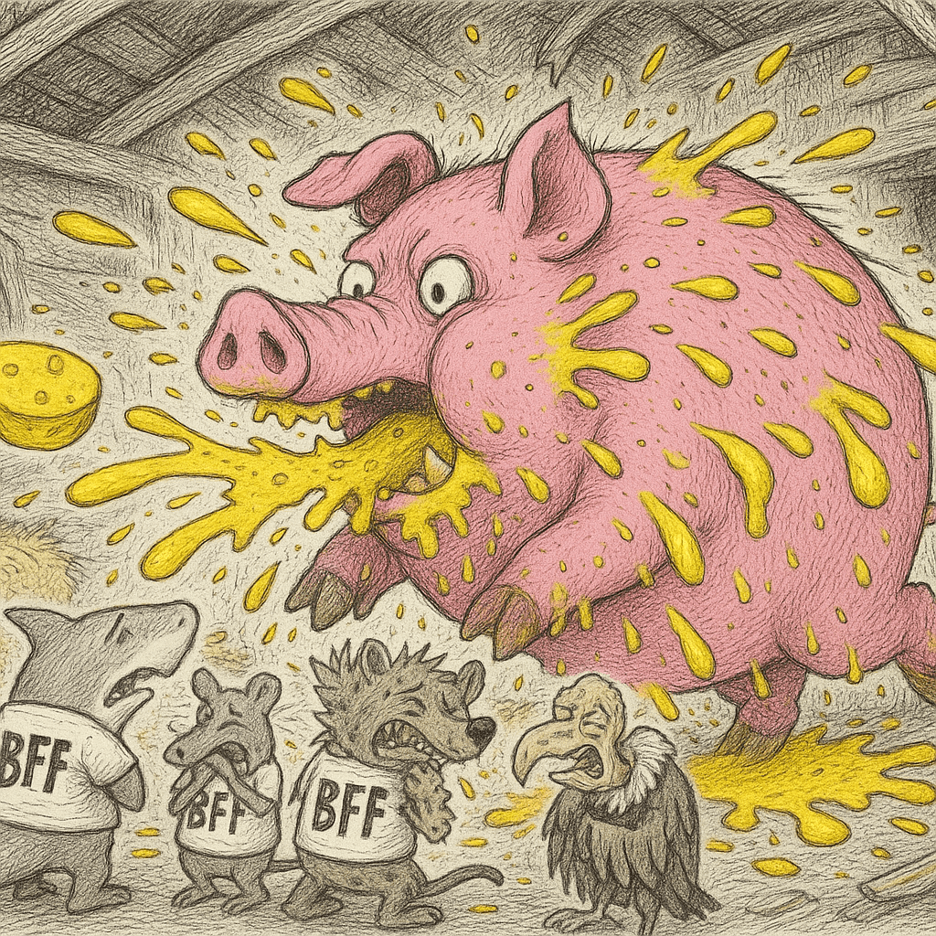 The pig ate it all and squealed again, “Hungry, hungry, hungry!”